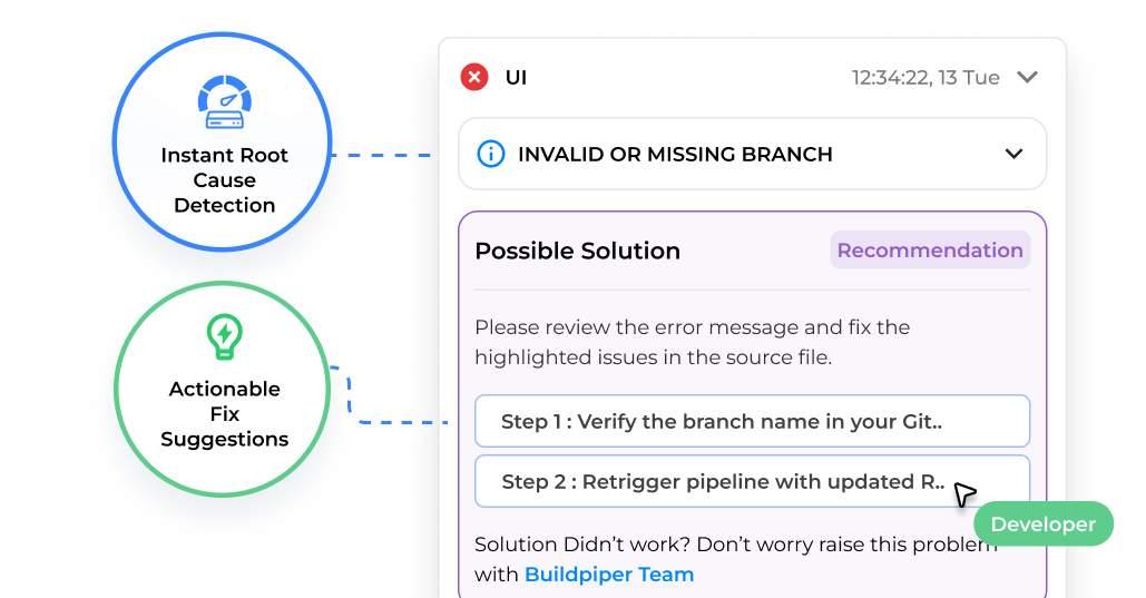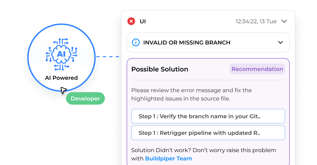 Seamlessly integrated across BuildPiper, delivering consistent failure intelligence in workflows, operations, releases.