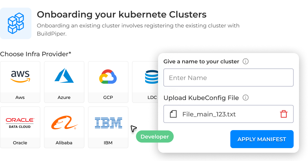 Yes. BuildPiper CloudOps supports AWS, Azure, GCP, and private infrastructure through provider-agnostic IaC and standardized provisioning workflows.