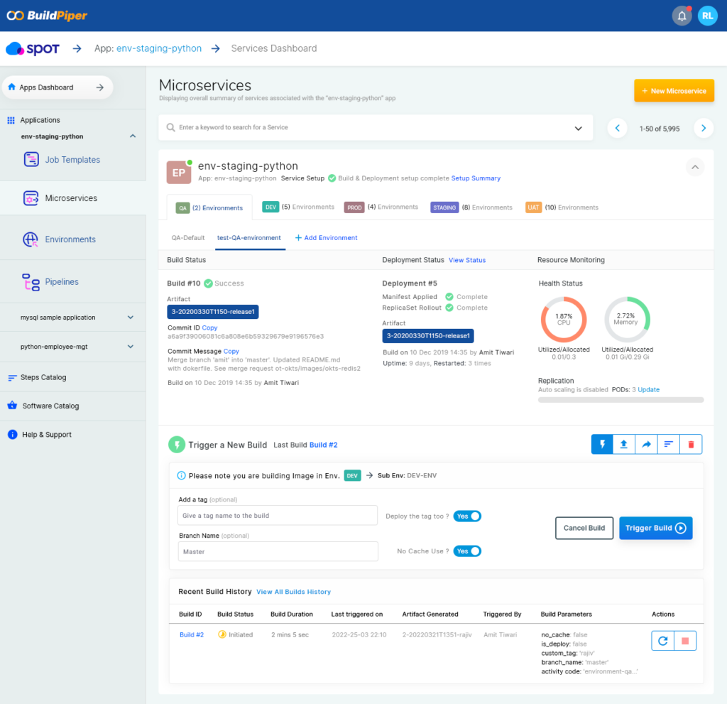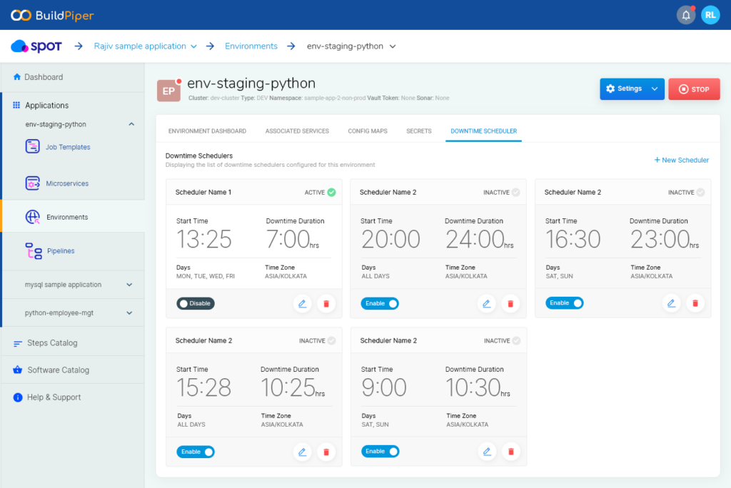 BuildPiper enables you to adopt ‘Feature based’ development approach seamlessly with multiple dynamic lower environments and automated scheduled downtime options for cost savings.